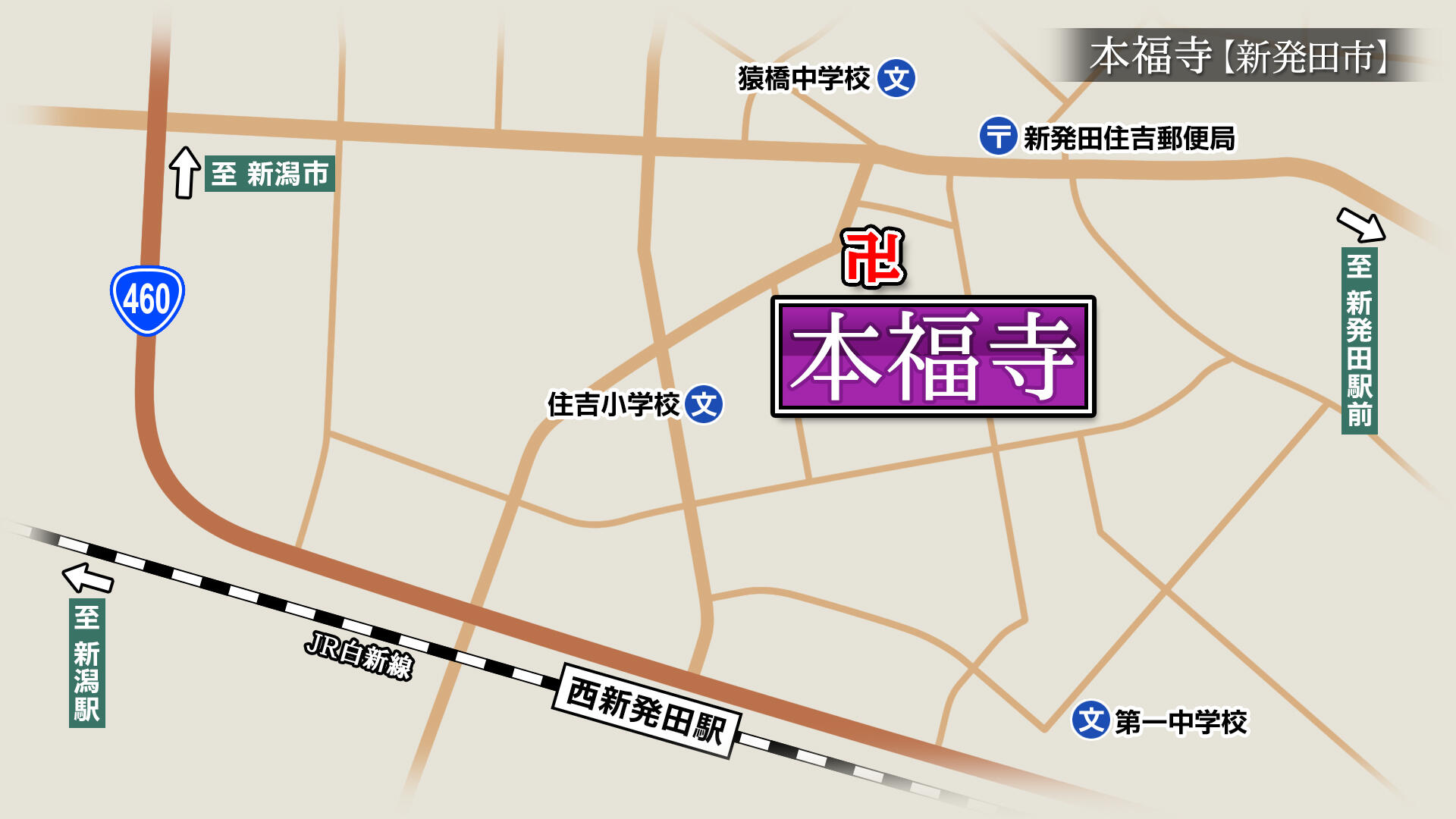 1587年に戦火で焼失したため近隣の集落へ移転。さらにその後も3回移転を繰り返し1694に現在の地に収まった。6世住職が本勝寺を本福寺と改めた。