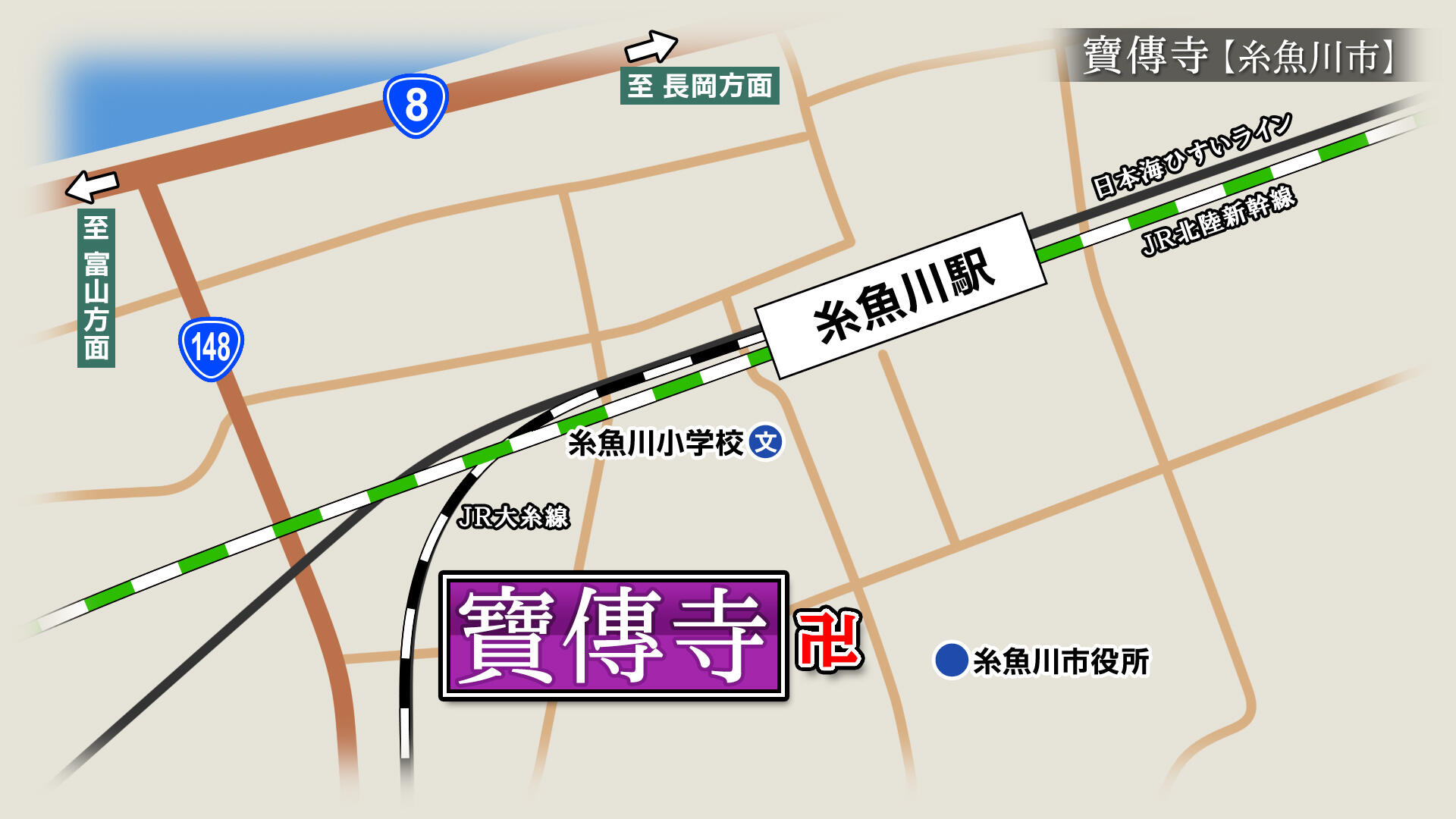 1646年、海に近い集落で開山。1814年焼失。当時の住職が清崎城(現在糸魚川市役所)城主と親交があったため城に近い今の地へ移転することができた。