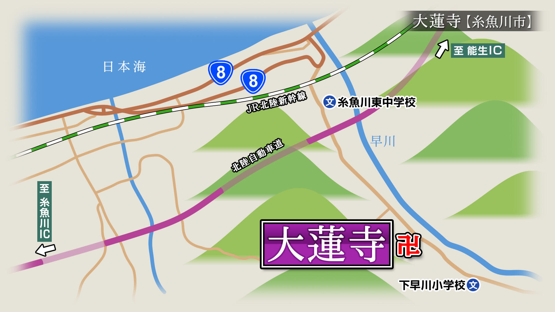 江戸時代に本山東本願寺が焼失し、糸魚川からも再建用木材を送ったが、その際使用した大きなそりが本堂に保存してある。