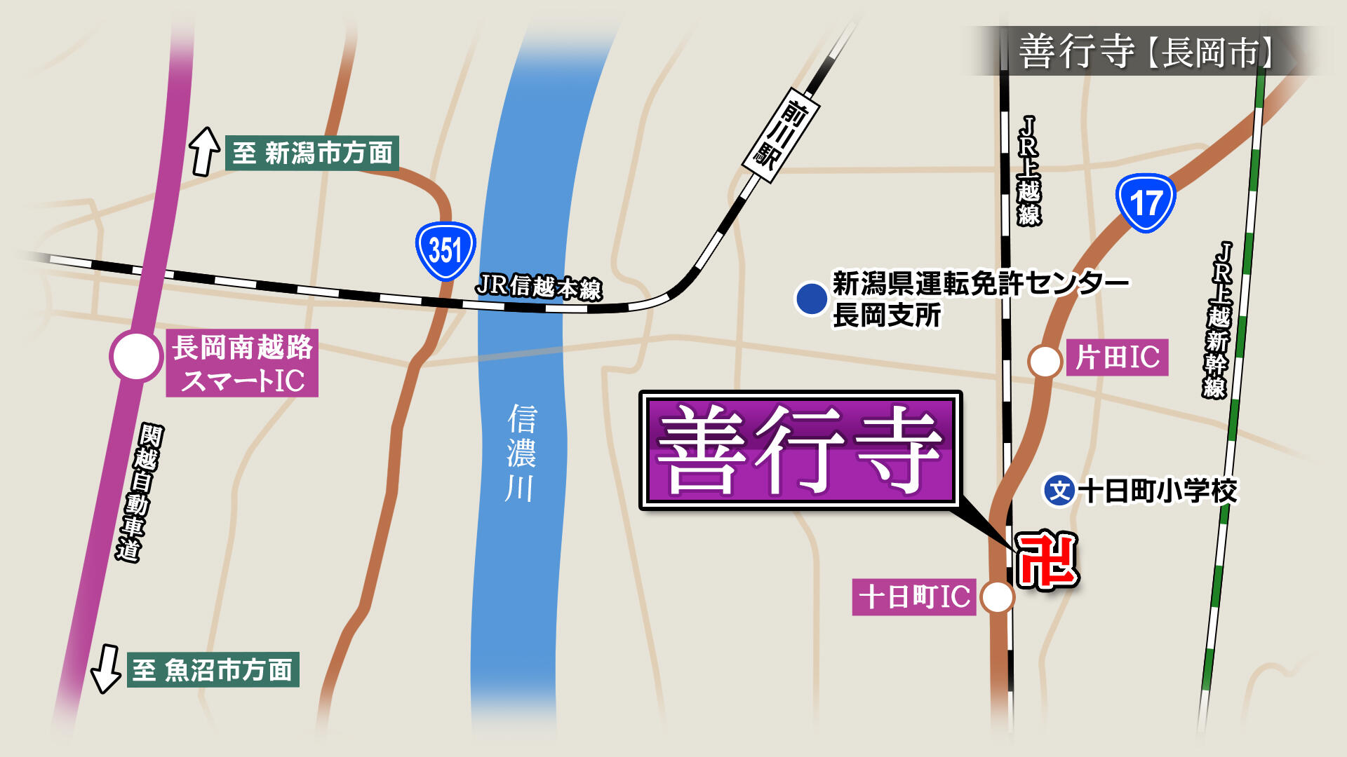 仏説阿弥陀経に書かれている西方浄土の世界を再現しているという。本堂に親鸞聖人越後七不思議のひとつ焼鮒と逆ダケが祀られている。