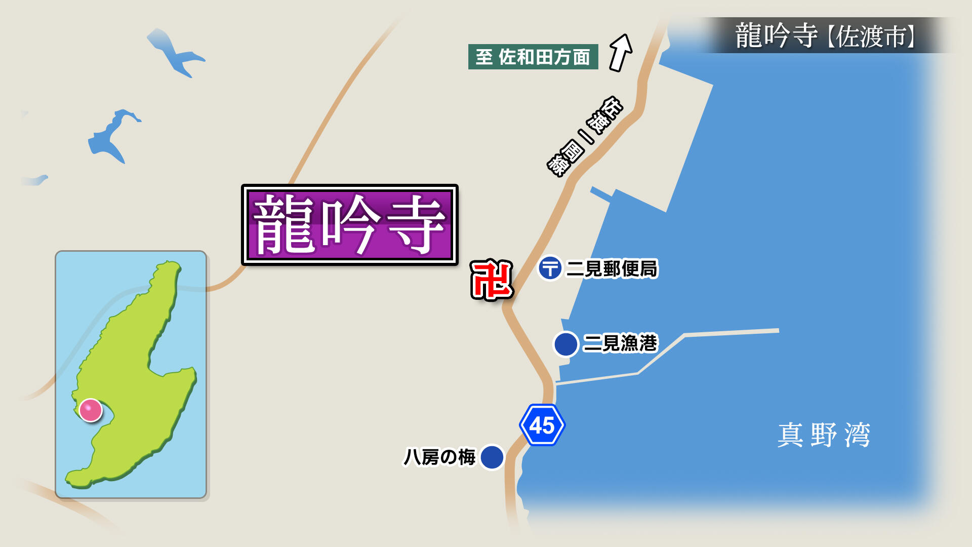 寺の境内にある大師堂には、弘法大師の木像がある。佐渡の沢根で大正時代末期に彫られたもので、1m80cmもの大きさ。