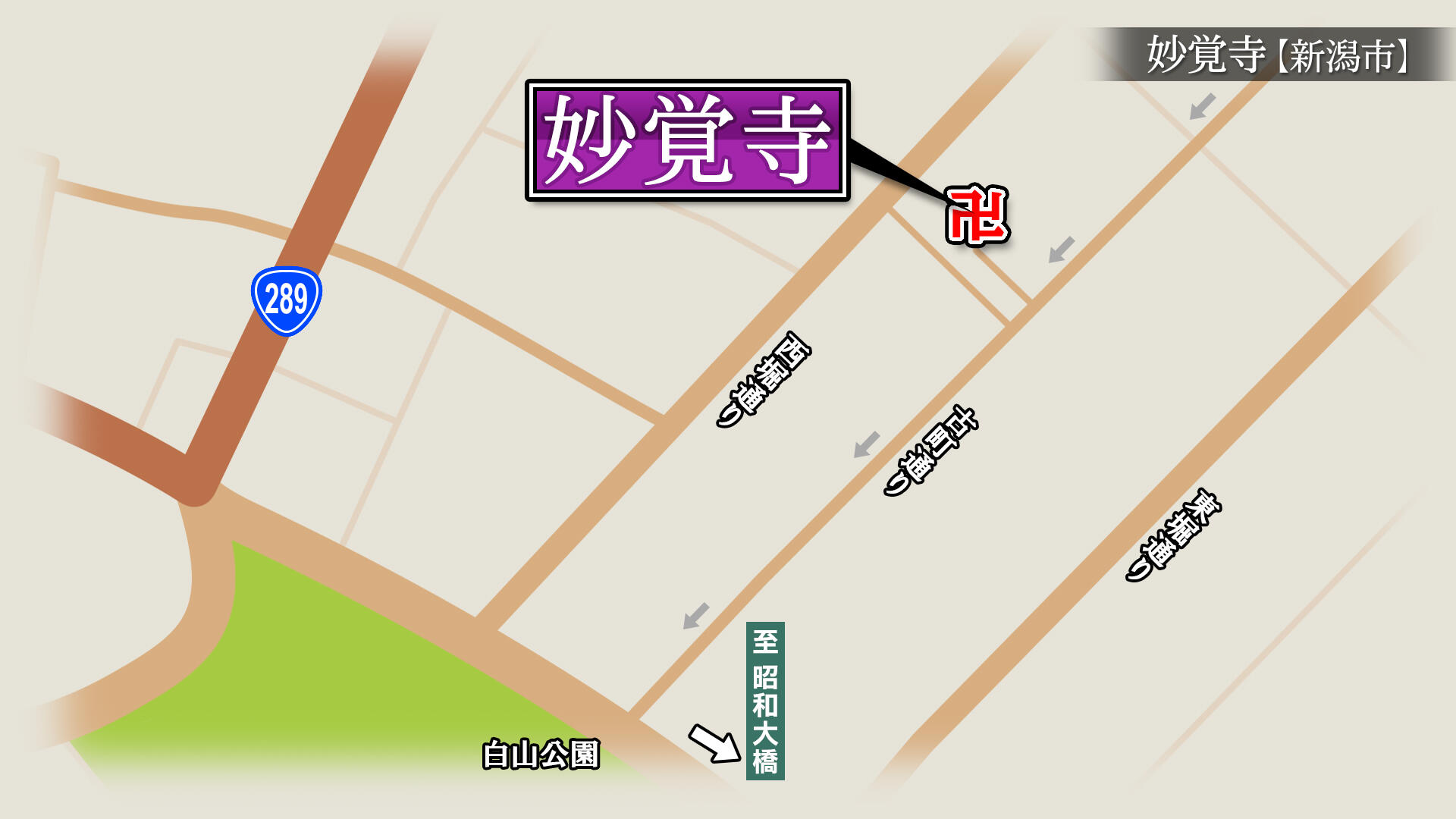上古町にある唯一の寺。約300年前、鏡ヶ淵と称する沼畔に鬼子母神堂として建立。後にこの地に移転し、現在の本堂は約140年前に建立された。