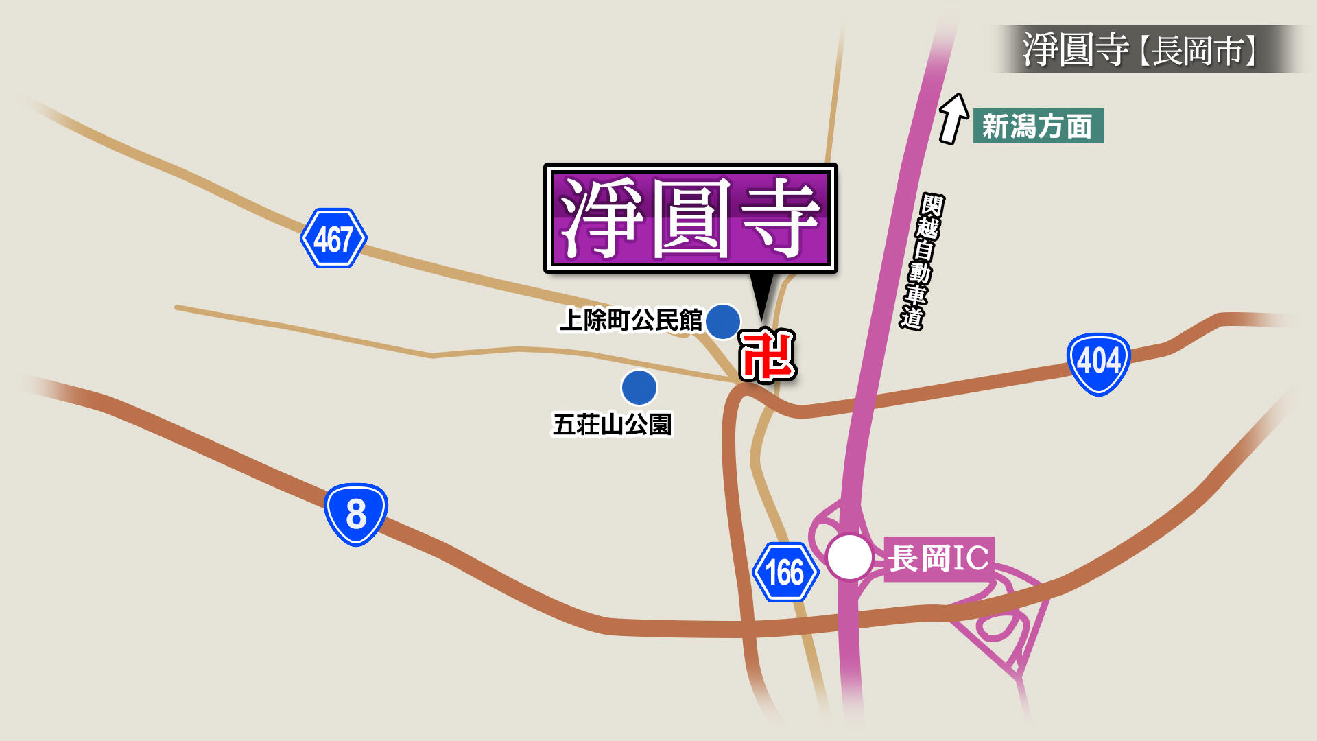 室町時代の1452年に長野で開かれ、後に長岡へ移転。江戸時代末期に火災で消失したが、後に再建された。