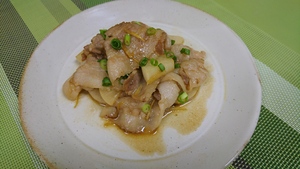 2.フライパンにサラダ油を熱し生姜と豚バラ肉を炒め、焼き色が付いたら大根を加えて炒める