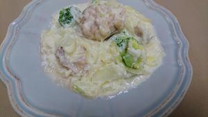 4.レンジから取り出した鶏肉とソースをからめたら完成