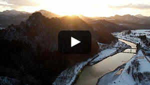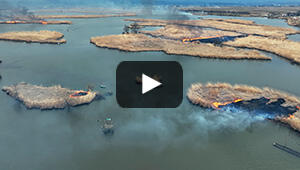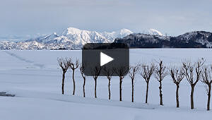 広さ260ヘクタール(東京ドームの55個分)を誇る福島潟。 220種類以上の野鳥や450種類以上の植物が確認されている自然の宝庫。 冬の太陽に照らされて美しく光る水面と真っ白な雪の共演をお楽しみください。