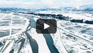 春の訪れとともに雪解け水が流れ、国内有数のブランド米を育てる大地を育む魚野川。