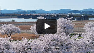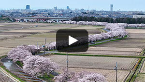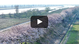 町民の手で植えられたソメイヨシノが約4.6キロにわたって新江用水路の両岸に咲き誇ります。