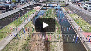 使わなくなった鯉のぼりを住民から寄付してもらい、地元の商工会が貼り付けている。