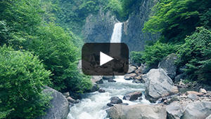 70mの高さから3段に曲折しながら流れ落ちる壮大な滝で、滝壷には竜神が住むという伝説が残されています。