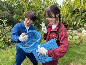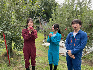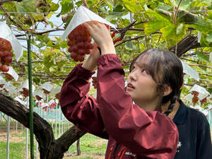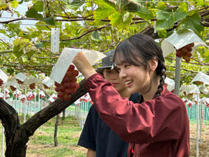 収穫したジューシーなぶどうやシャキッとした歯ごたえのリンゴの美味しさに感動する。