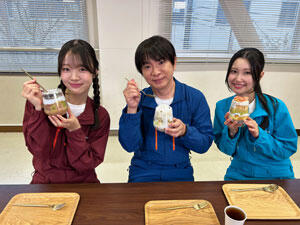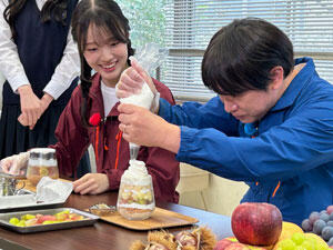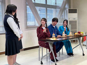 最後に食品技術科の生徒が2人のために収穫した果物や手作りシフォンケーキなどを盛り込んだ
