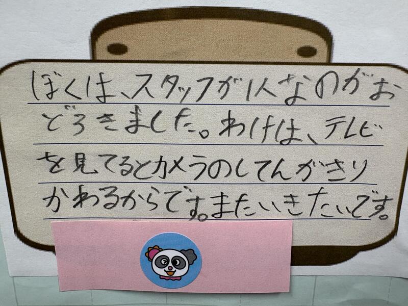 先日、小須戸小学校5年生の皆さんがスタジオ見学に来てくれましたが、その後、感想のメッセージを送ってくださいました。