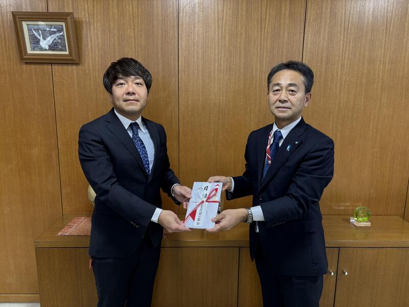 井畑明彦胎内市長へカメラマンの五十嵐祐より目録を贈呈させて頂きました!