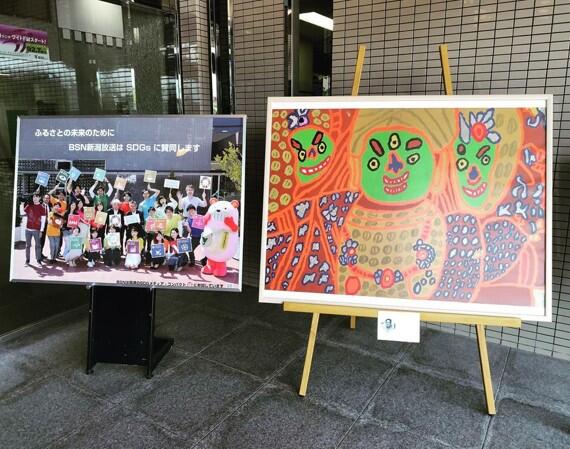 BSN新潟放送では、2021年5月から本社正面玄関に「まちごと美術館 ことこと」さんの障がい者アートを設置し、自社のSDGsの取り組みを可視化しました。