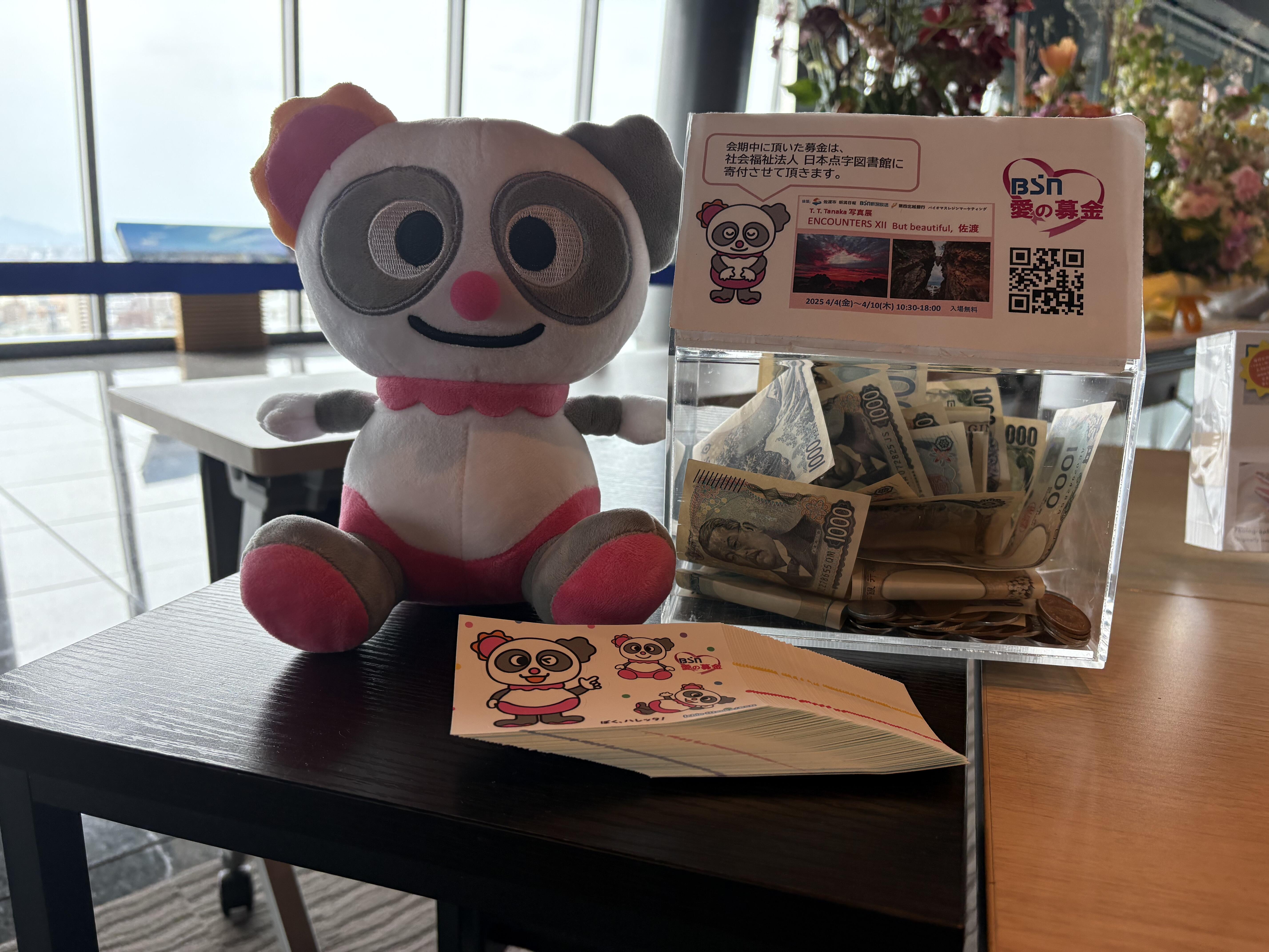 会場に置かせて頂いた「BSN愛の募金」は、すべて日本点字図書館へ寄付させて頂きます。T.T.Tanakaさんは、撮影の他に、音声も録音して公開されています。そのURLを伝えるために点字シートが必要なのです。