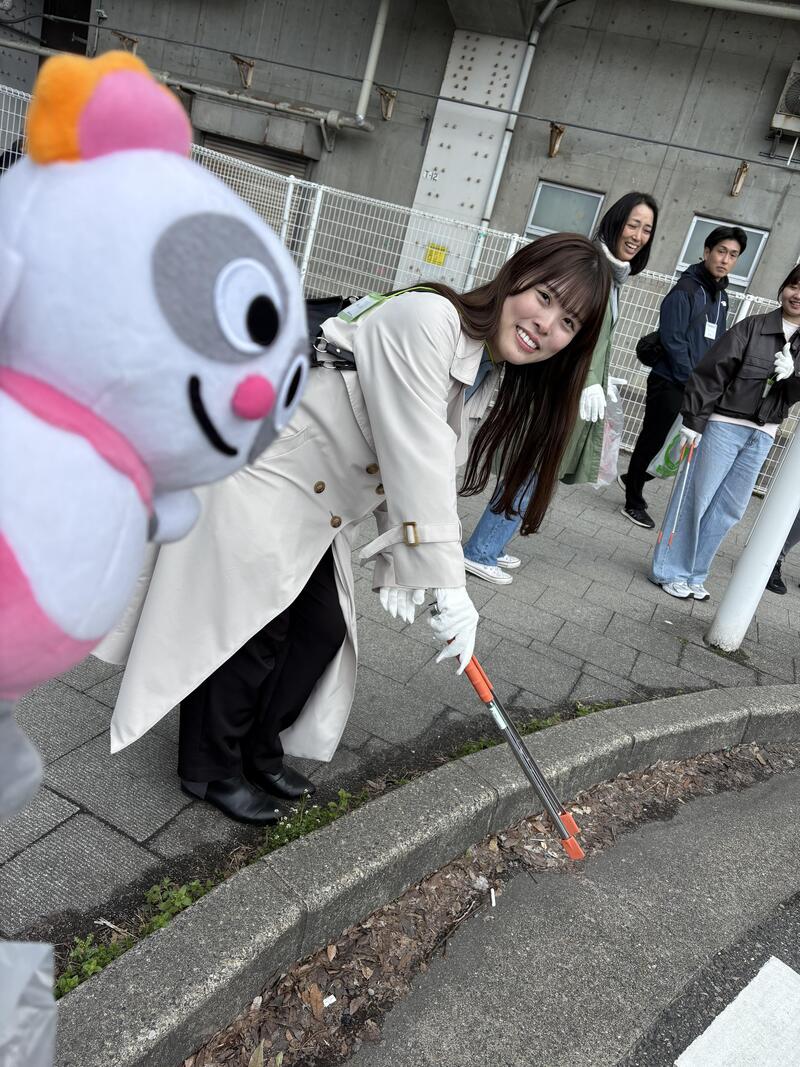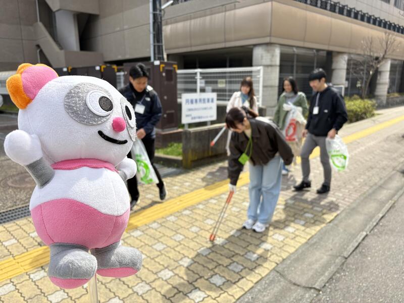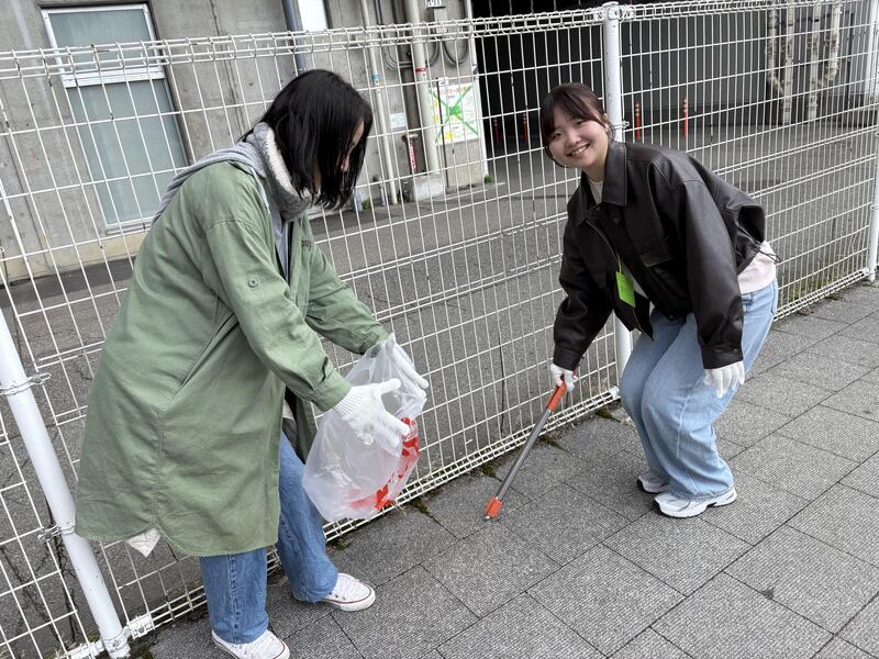学生がトング、企業メンバーがごみ袋を持つことで、自然と会話が生まれます。