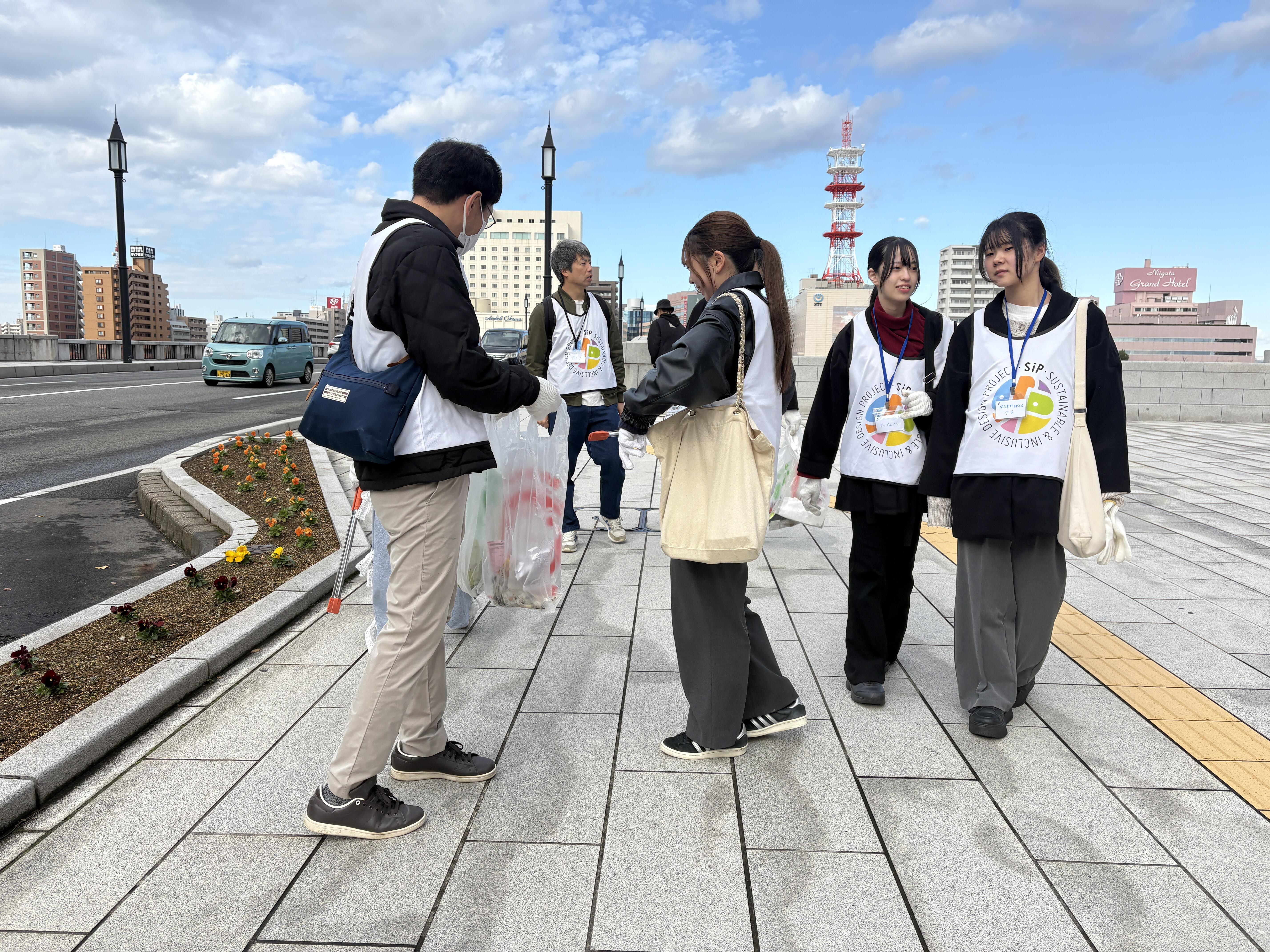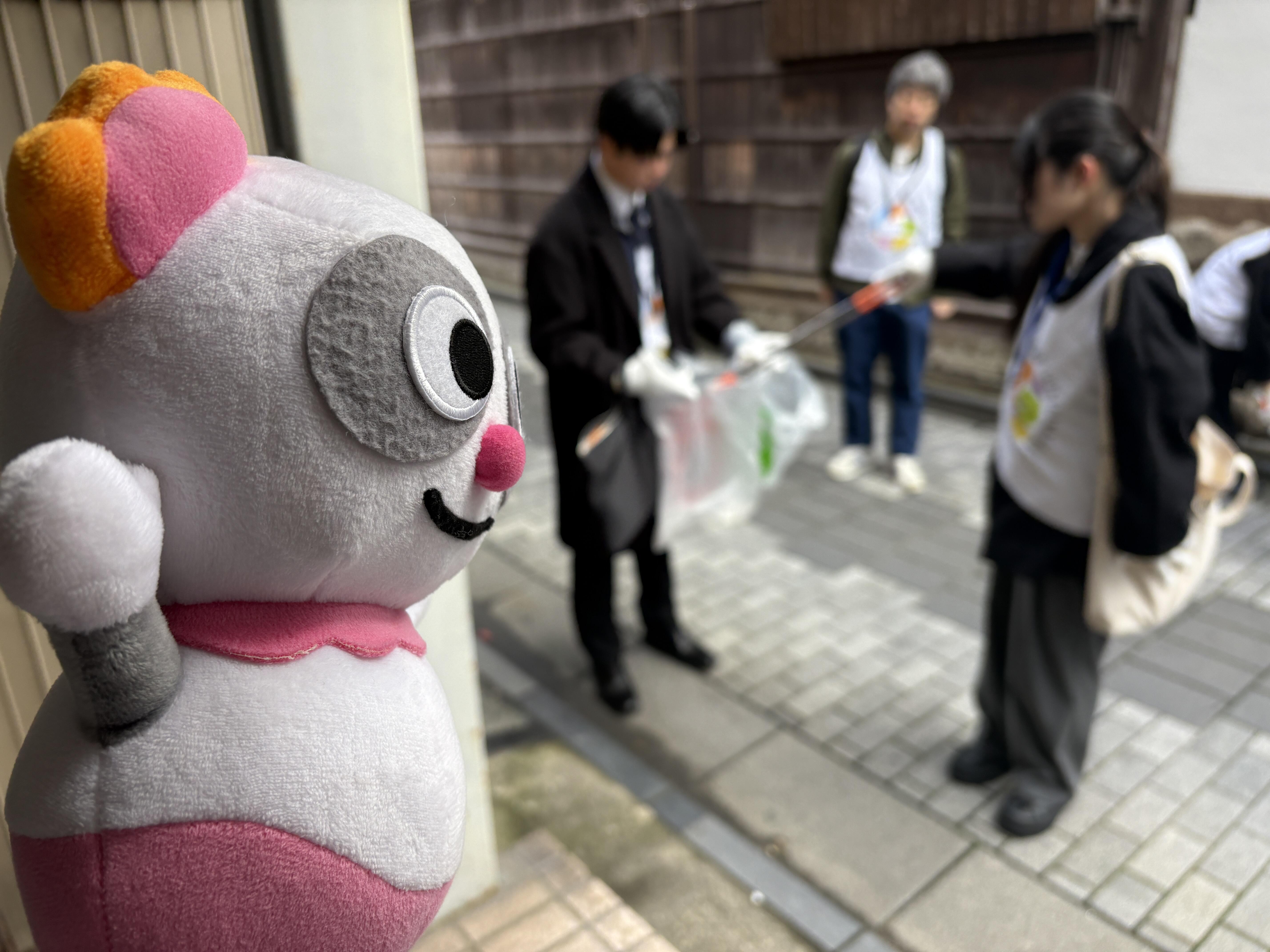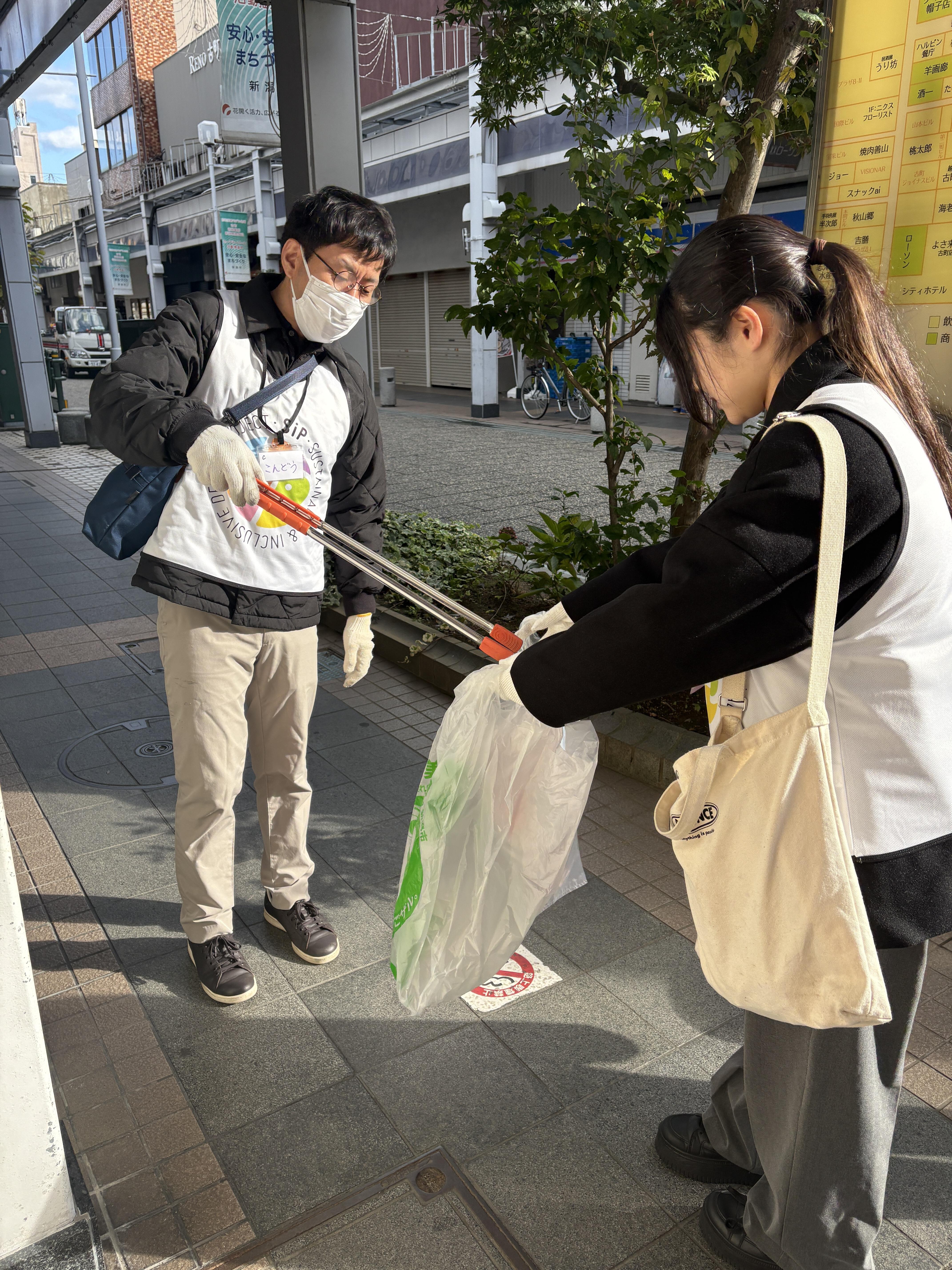 社会人に古町を案内されながら、次々にゴミ拾い。