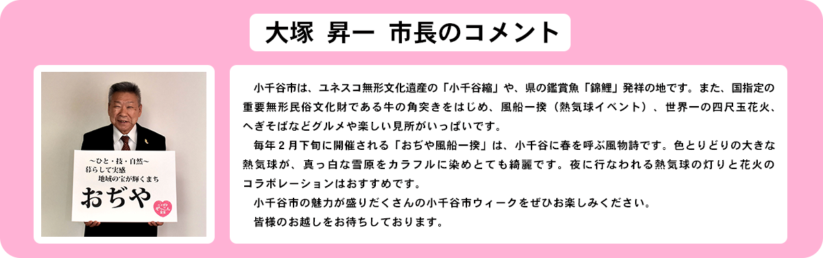 小千谷市発祥の「錦鯉」と「小千谷に来い(来てください)」と「恋」をかけて制作したオリジナルソングに合わせ、小千谷の魅力がつまったプロモーションビデオが完成しました。